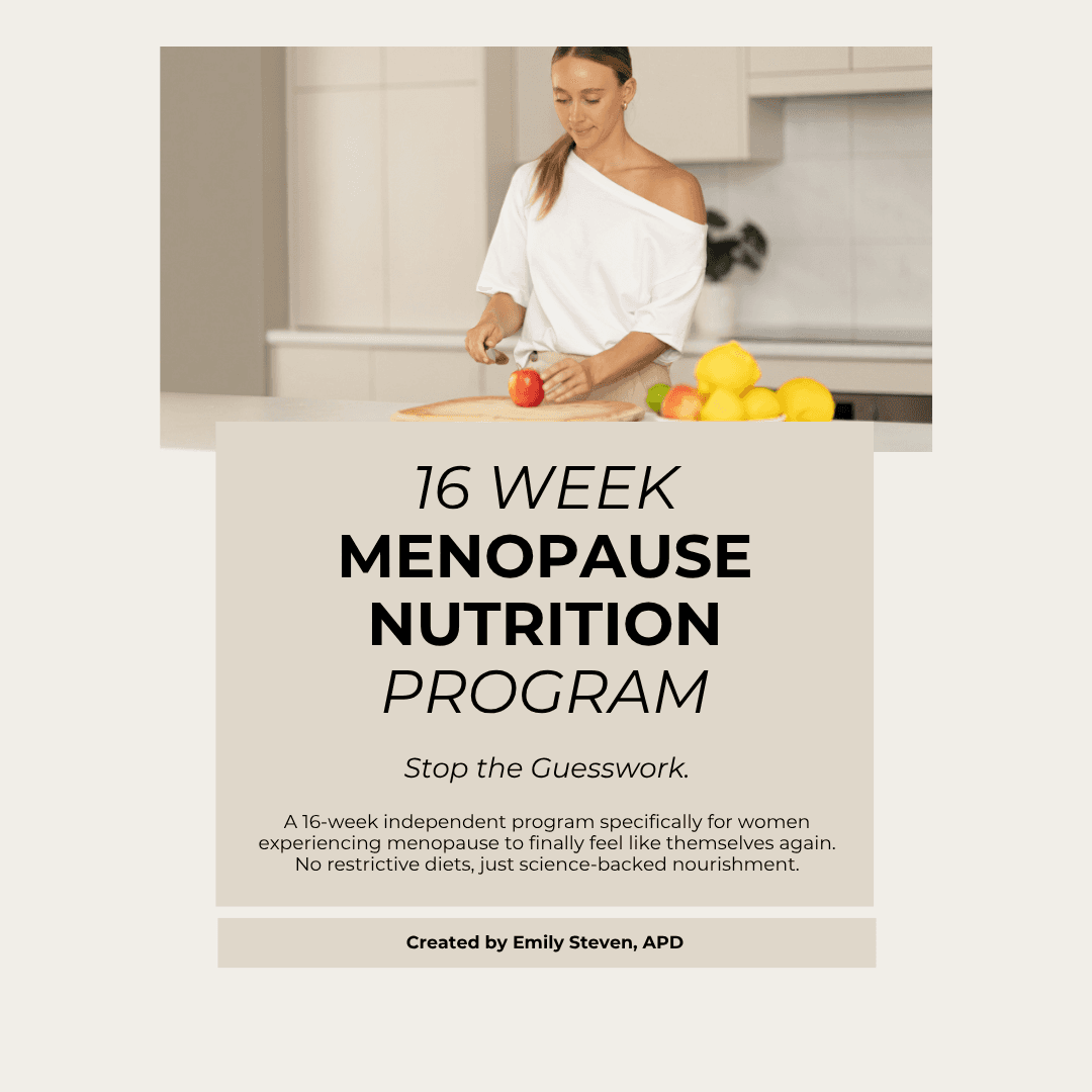 Simple, evidence-based tools to help you feel more in control of your nutrition, energy, and health during menopause without restrictive dieting or overwhelm.